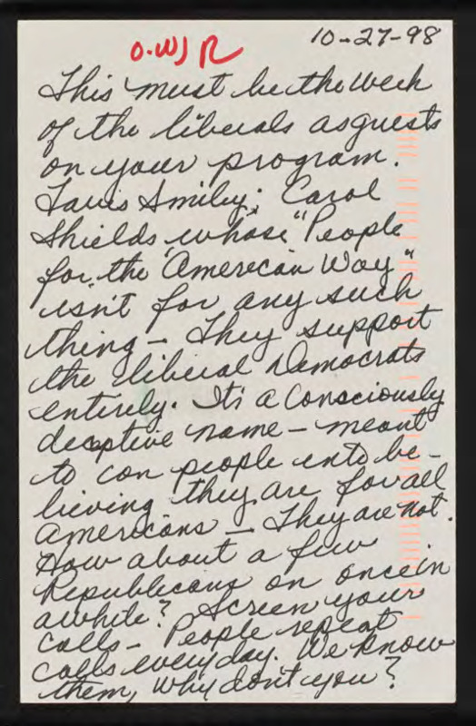 Accuses C-SPAN of bias and criticizes the organization "People for the American Way."