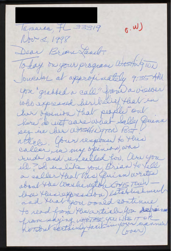 Letter to C-SPAN, 1998-11-02; 33319