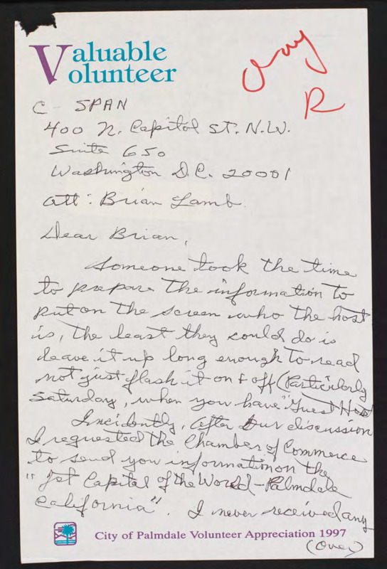 Letter to C-SPAN, n.d.; 93550