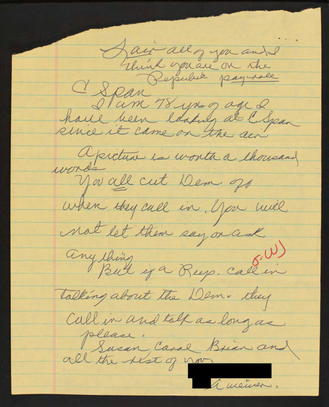 Letter to C-SPAN, n.d.; 24017