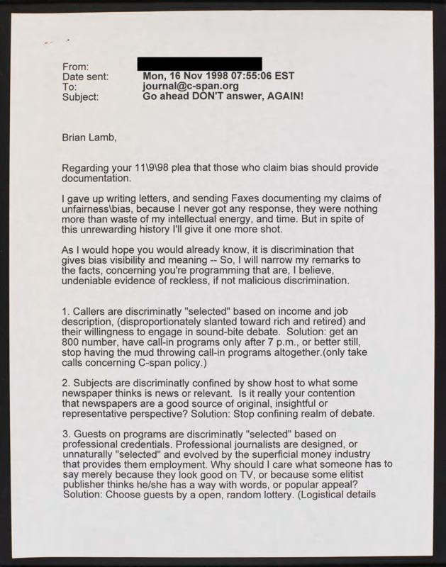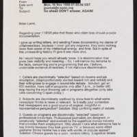 Offers specific instances of alleged bias and encloses previously sent correspondence which was never answered.