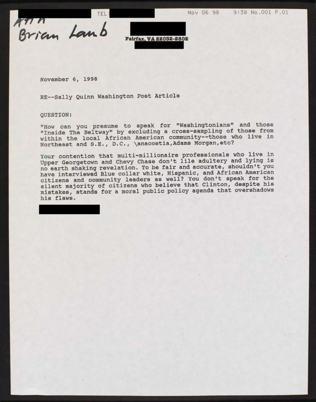Letter to C-SPAN, 1998-11-06; 22032