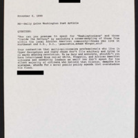 In response to a C-SPAN guest, contends that she cannot speak for Washington, D.C. residents without consulting blue collar workers and minorities as to their feelings about Bill Clinton.