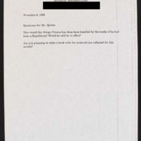 Asks how the media would have handled the Clinton accusations differently if he were Republican, and asks a C-SPAN guest about her plans to write a book.