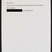 Asks a C-SPAN guest how much of her success is owed to Ben Bradlee.