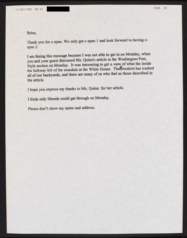 Letter to C-SPAN, 1998-11-06