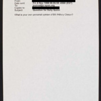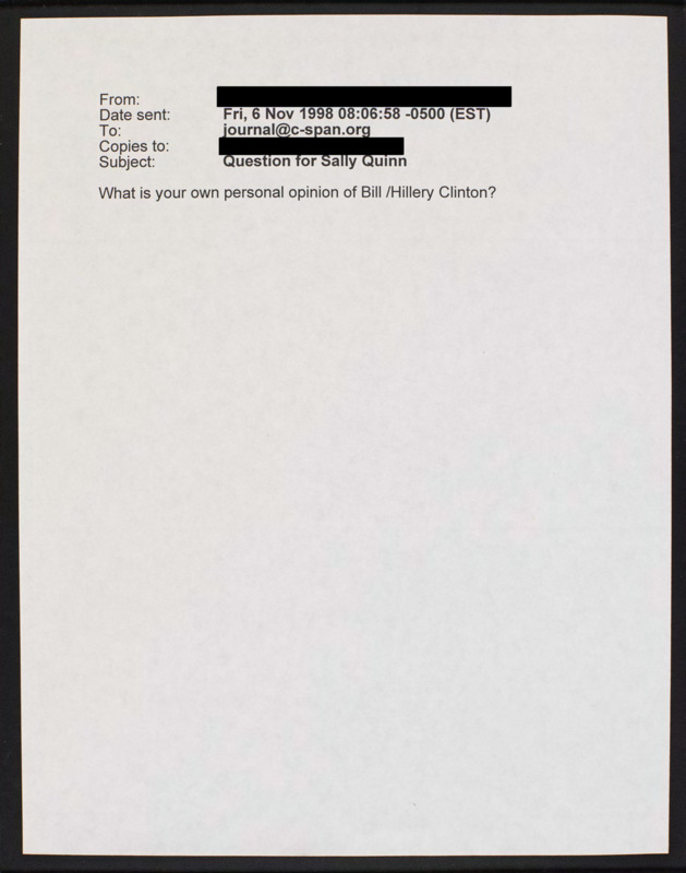 Asks a C-SPAN guest what their personal opinion of Bill and Hillary Clinton is.