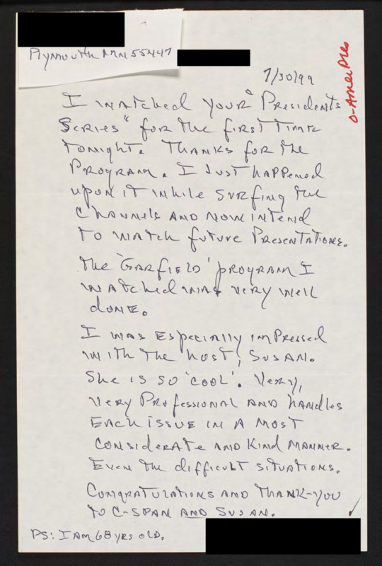 Thanks C-SPAN for the American Presidents series and praises Susan Swain's presenting.