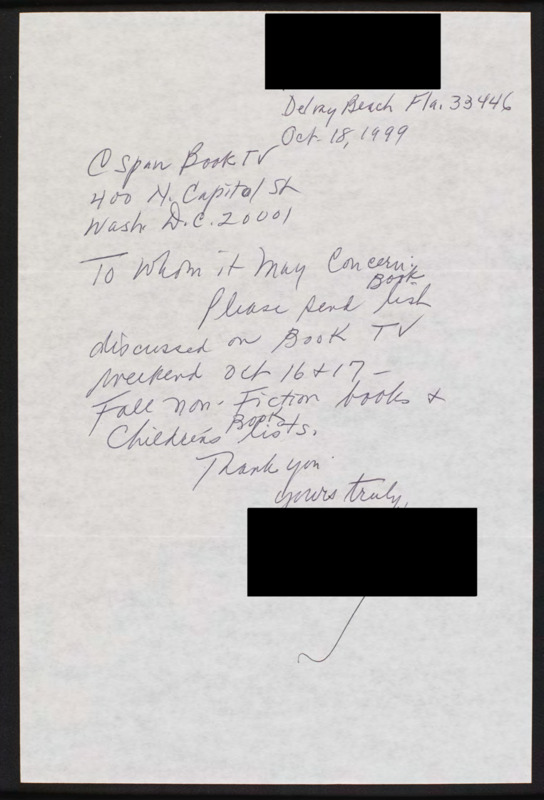 Letter to C-SPAN, 1999-10-18; 33446