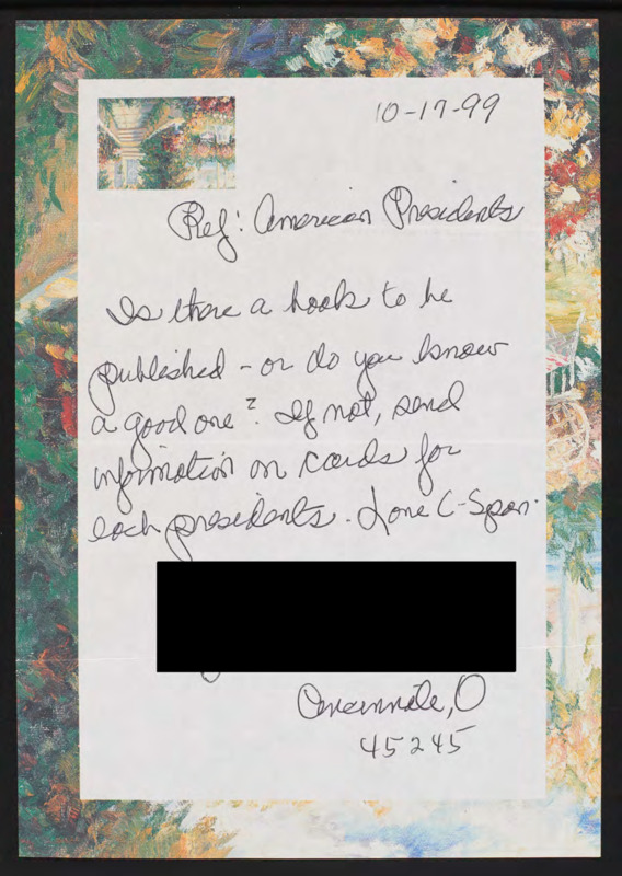 Letter to C-SPAN, 1999-10-17; 45245