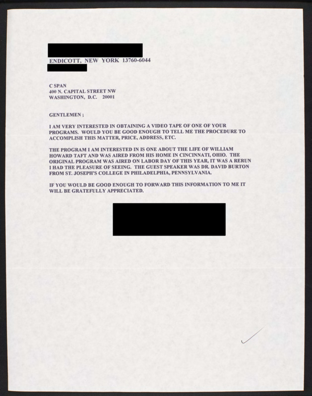 Letter to C-SPAN, n.d.; 13760