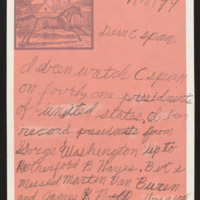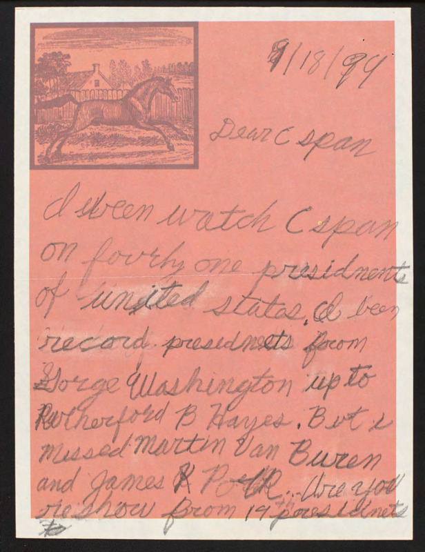 Requests video tapes of the Martin Van Buren and James K. Polk episodes of the American Presidents series.