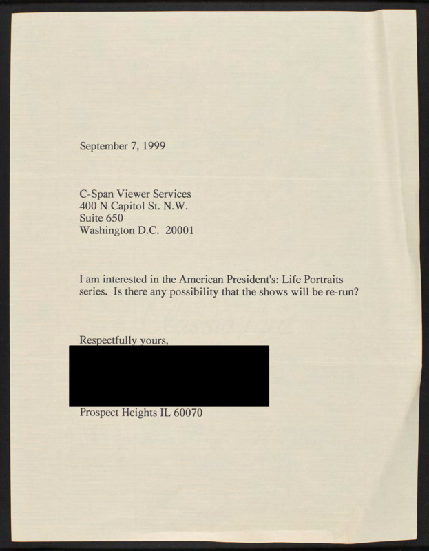 Letter to C-SPAN, 1999-09-07; 60070