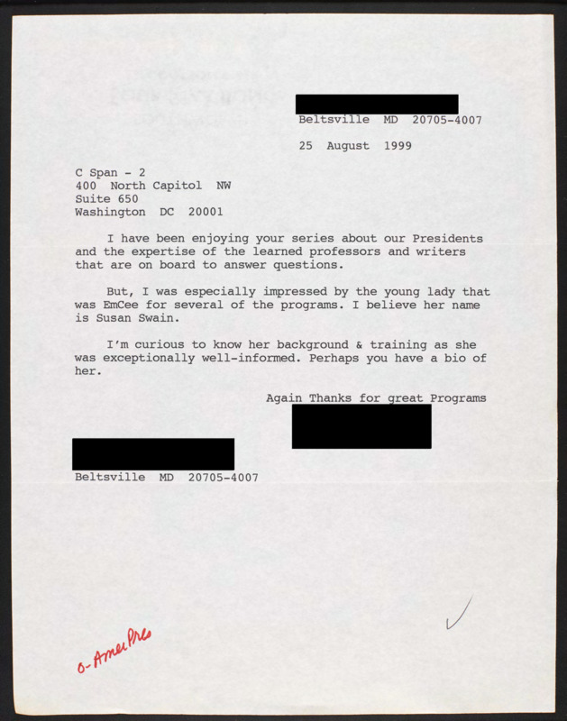 Letter to C-SPAN, 1999-08-25; 20705