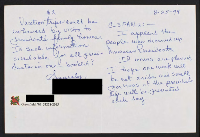 Letter to C-SPAN, 1999-08-25; 53228