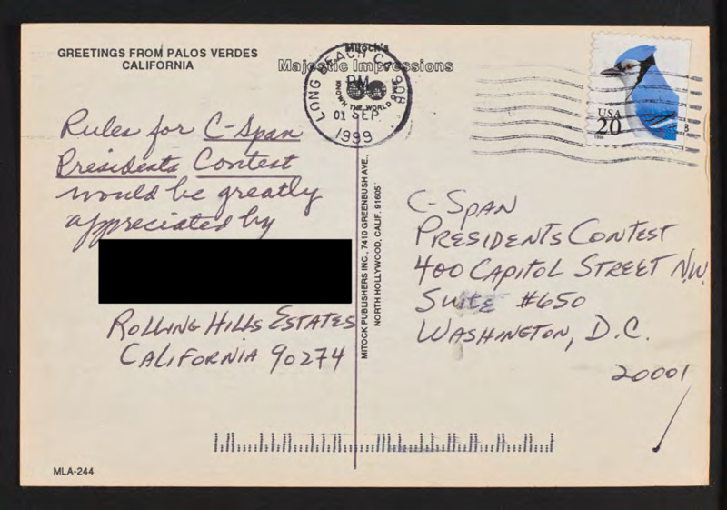 Letter to C-SPAN, 1999-09-01; 90274