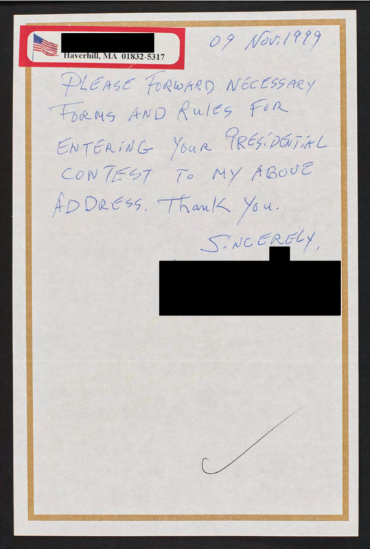 Letter to C-SPAN, 1999-11-09; 01832