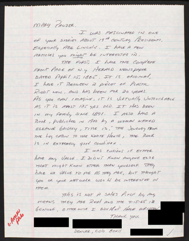 Writes about two archival artifacts he has and wonders if they have any value.