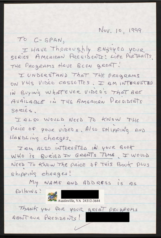 Letter to C-SPAN, 1999-11-10; 24312