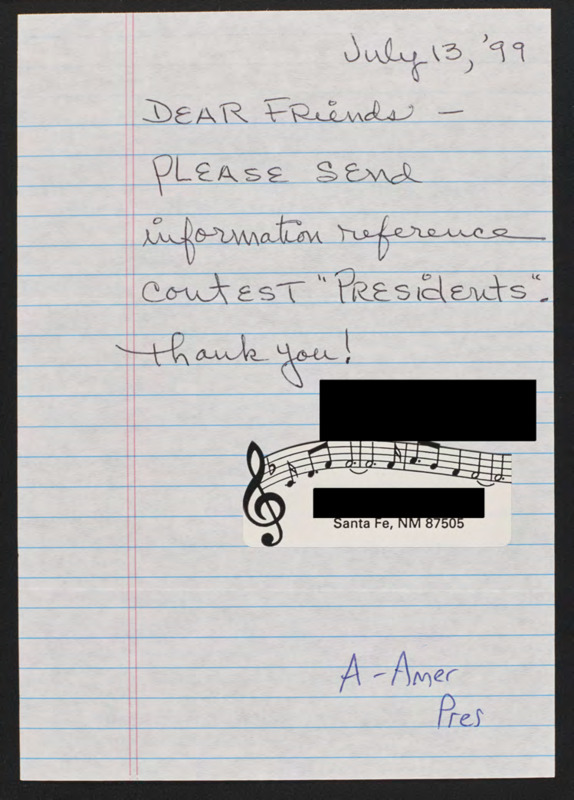 Requests the contest rules for the American Presidents series contest.