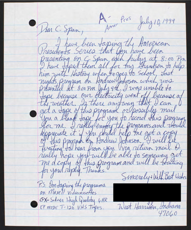Letter to C-SPAN, 1999-07-10; 47060