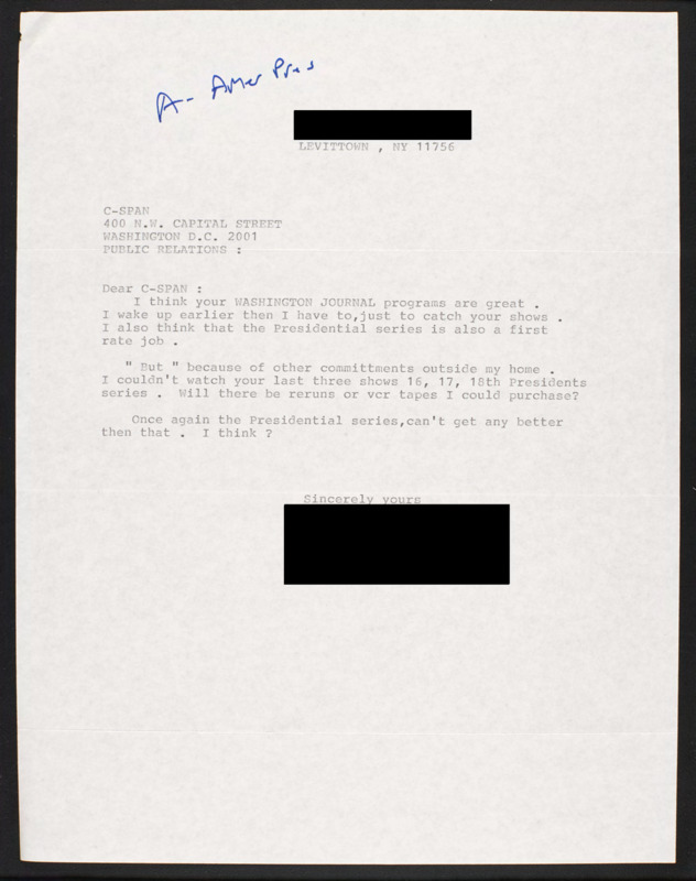 Letter to C-SPAN, n.d.; 11756
