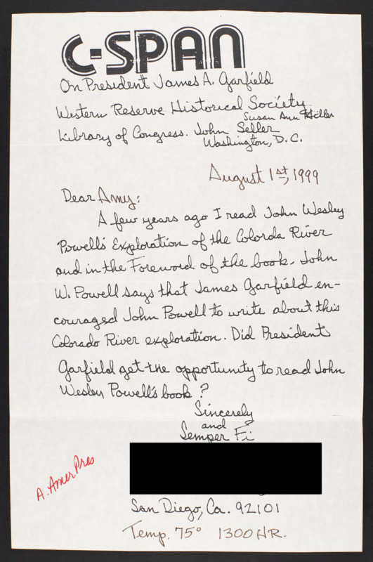 Asks if James A. Garfield was able to read a book written by John Wesley Powell.