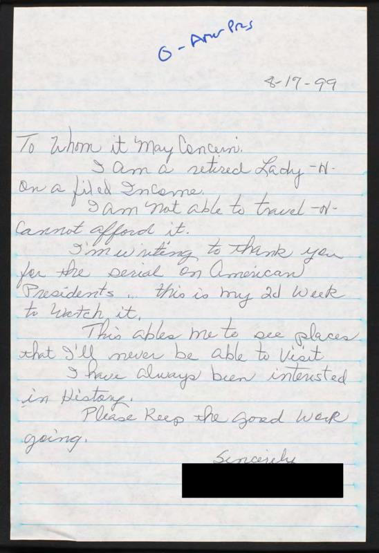 Letter to C-SPAN, 1999-08-17