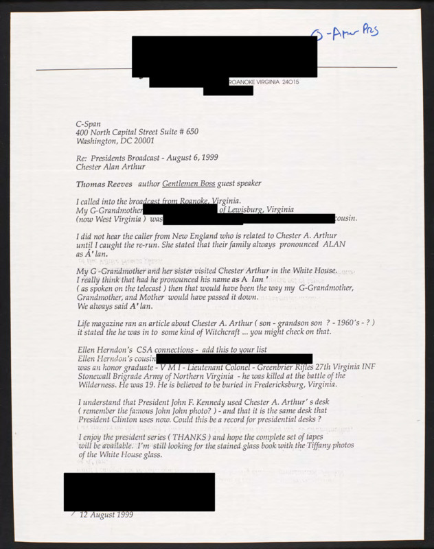 Letter to C-SPAN, 1999-08-12; 24015