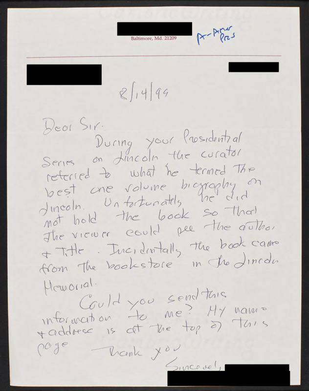 Letter to C-SPAN, 1999-08-14; 21209