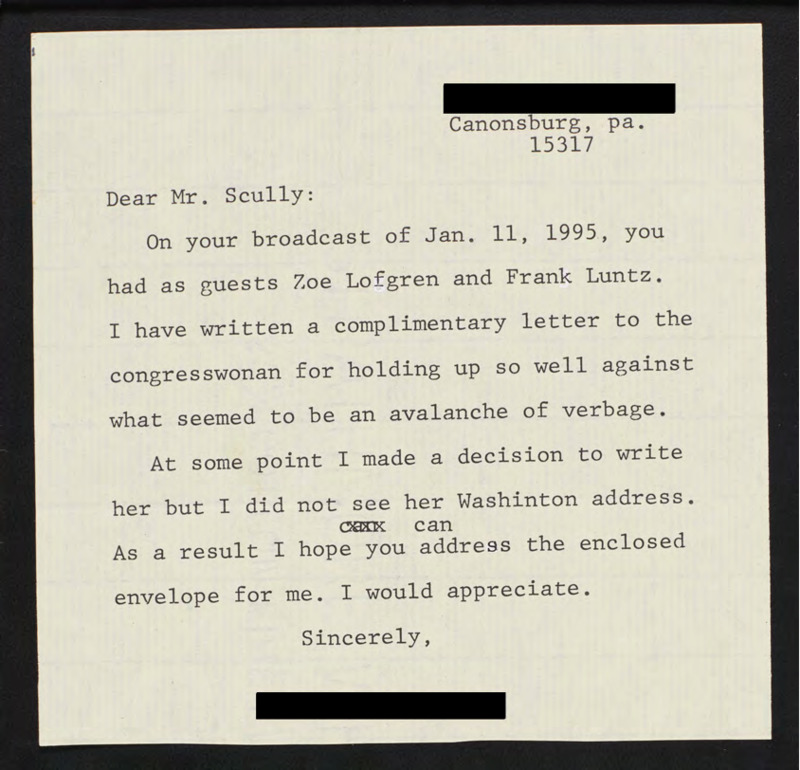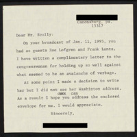 Asks for their complimentary letter to be forwarded to a Congresswoman.