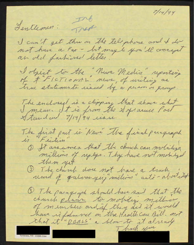 Letter to C-SPAN, 1994-07-14; 13208