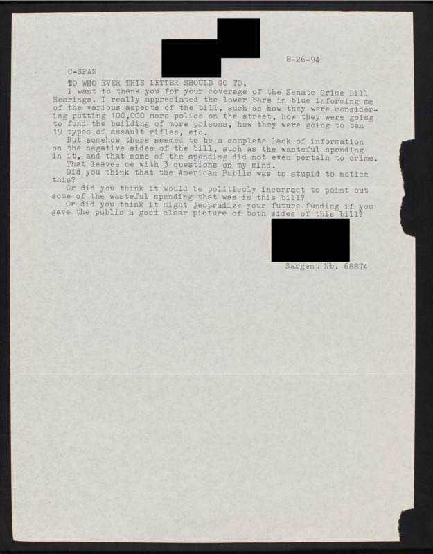 Letter to C-SPAN, 1994-08-26; 68874