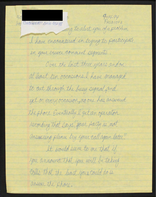 Letter to C-SPAN, 1994-09-14; 45248