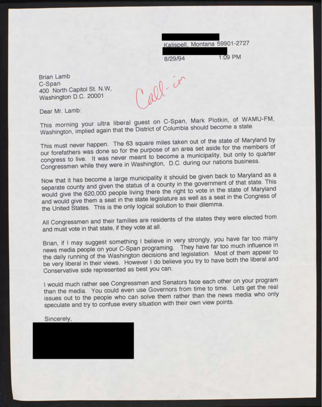 Opposes the idea of Washington D.C. becoming a state. Says most media outlets are liberal and they would prefer to see Senators and Representatives discuss the issues.