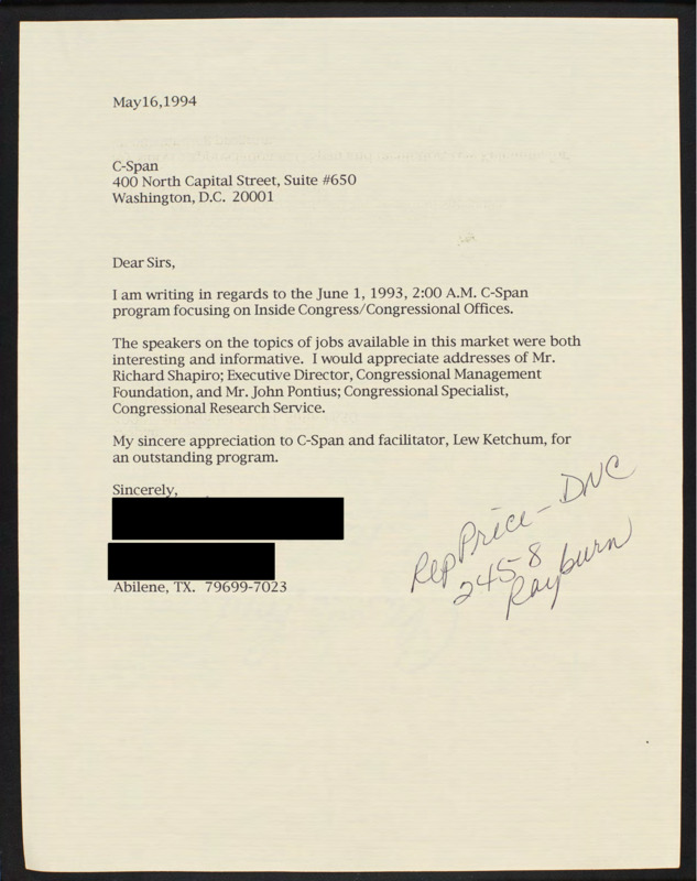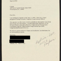 In regards to a program on Congress/Congressional offices, requests the contact information for Richard Shapiro and John Pontius.