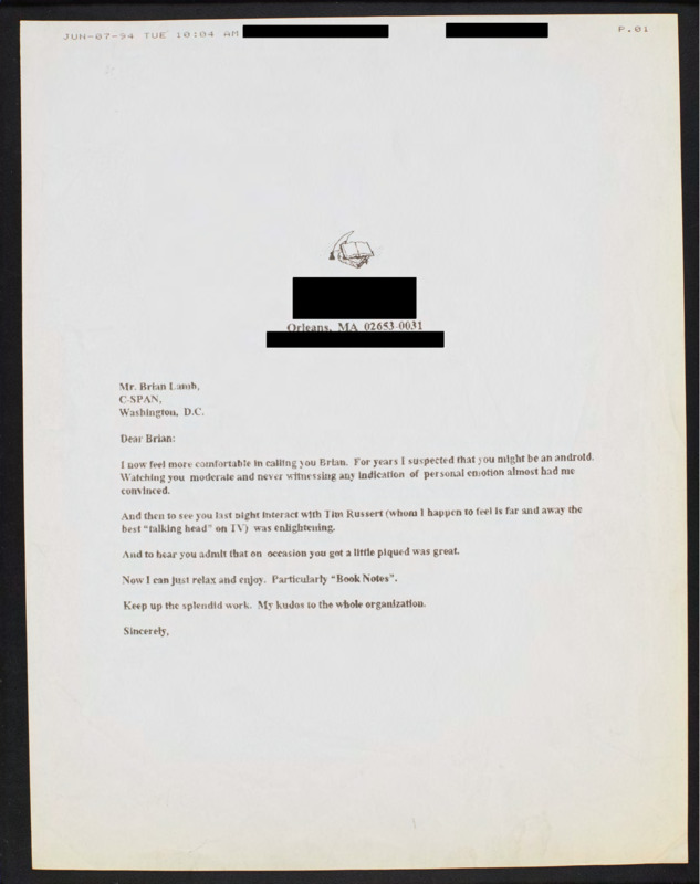 Letter to C-SPAN, 1994-06-07; 02653