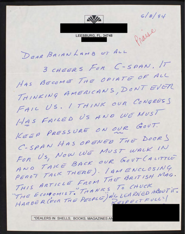 Letter to C-SPAN, 1994-06-08; 34748