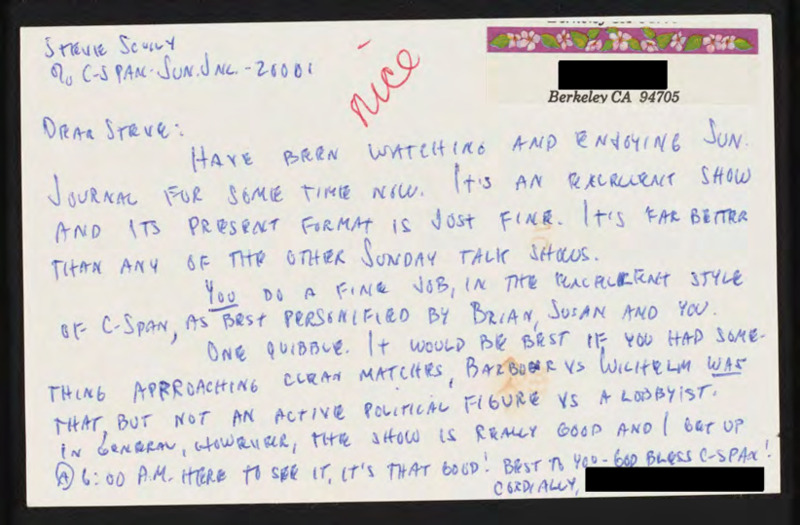 Letter to C-SPAN, n.d.; 94705
