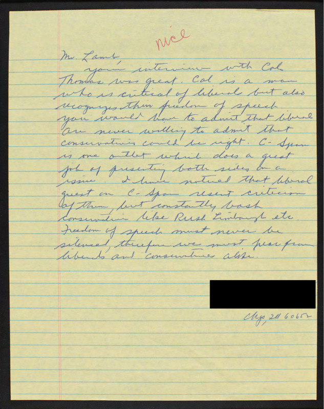 Letter to C-SPAN, n.d.; 60652