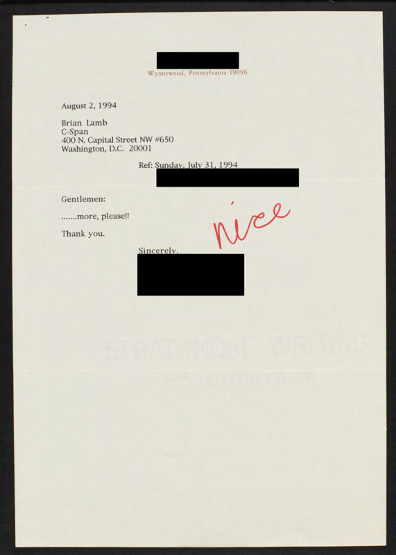 Asks for more programs with David Halberstam, David McCullough, and George Will.