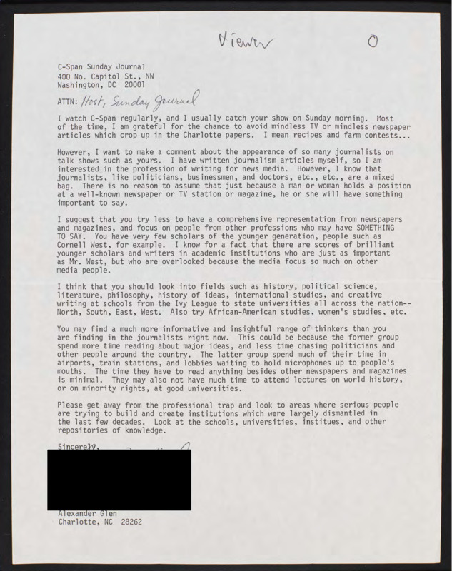 Letter to C-SPAN, n.d.; 28262