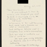 Responds to a caller's mention of Jackie Onassis. Claims the United States has lost the ability to determine right from wrong.