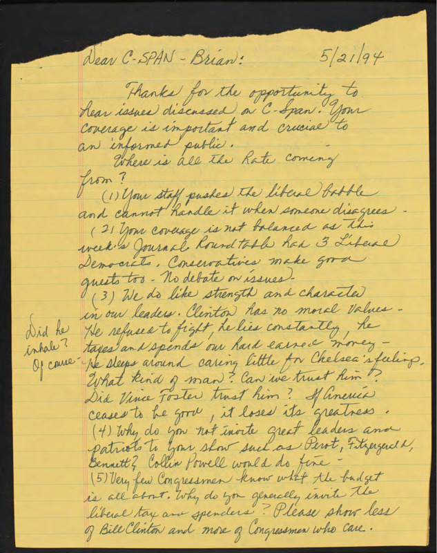 Letter to C-SPAN, 1994-05-21