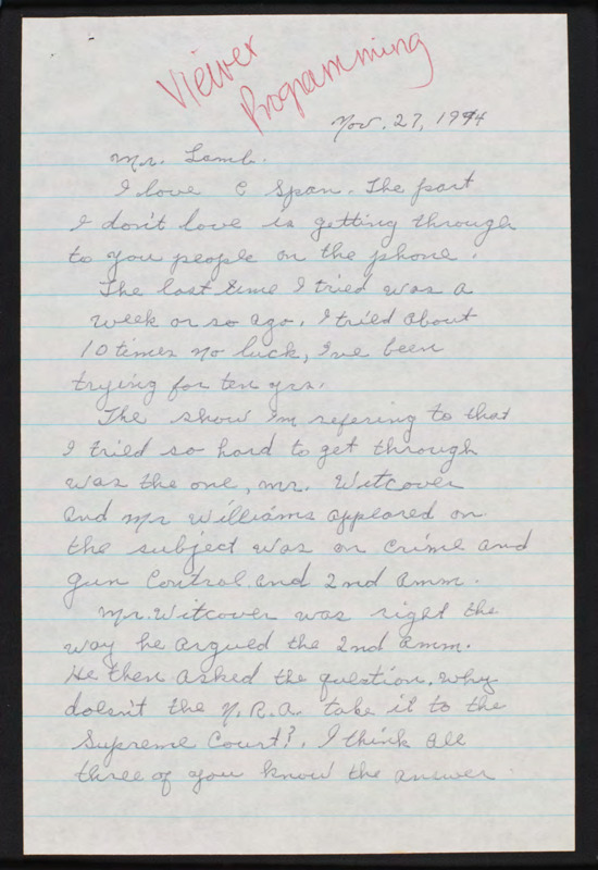 Says it is difficult to call the show and they have tried for ten years. Agrees with a guest's opinion on the second amendment and explains why they believe the NRA would not support a Supreme Court case.
