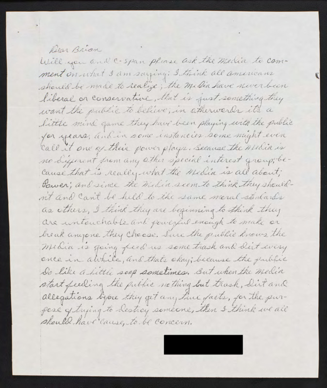 Letter to C-SPAN, 1994-05-27; 92220