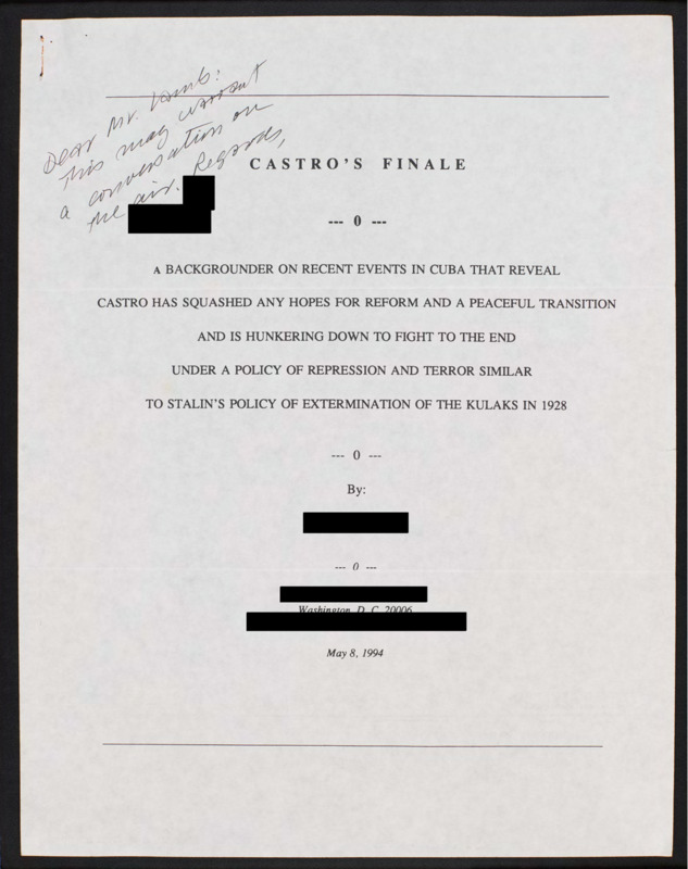 Asks if the network will air the attached essay about Fidel Castro not allowing Cuba to peacefully transition.
