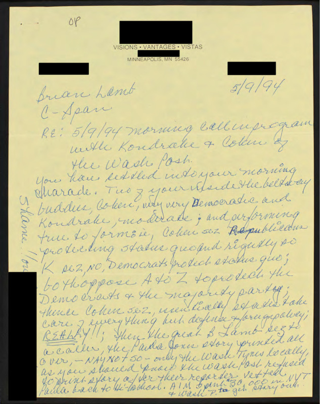 Letter to C-SPAN, 1994-05-09; 55426