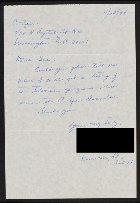 Letter to C-SPAN, 1994-04-28; 32514