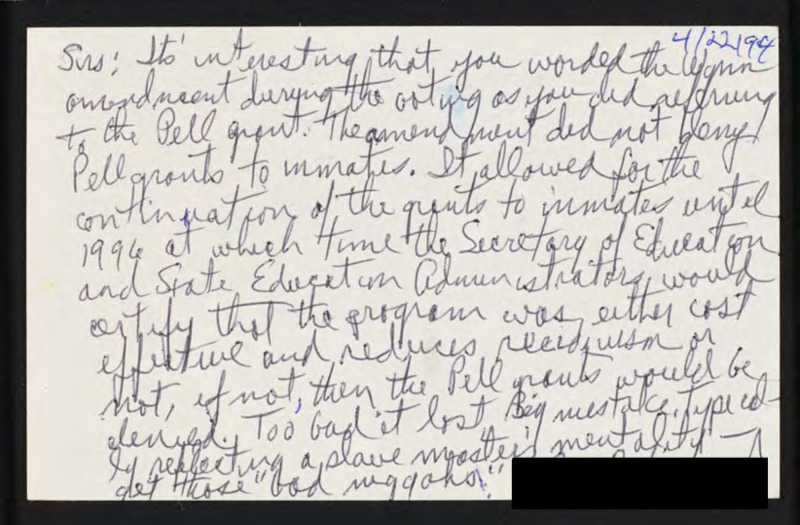 Explains Pell grants are not being denied to imprisoned people.